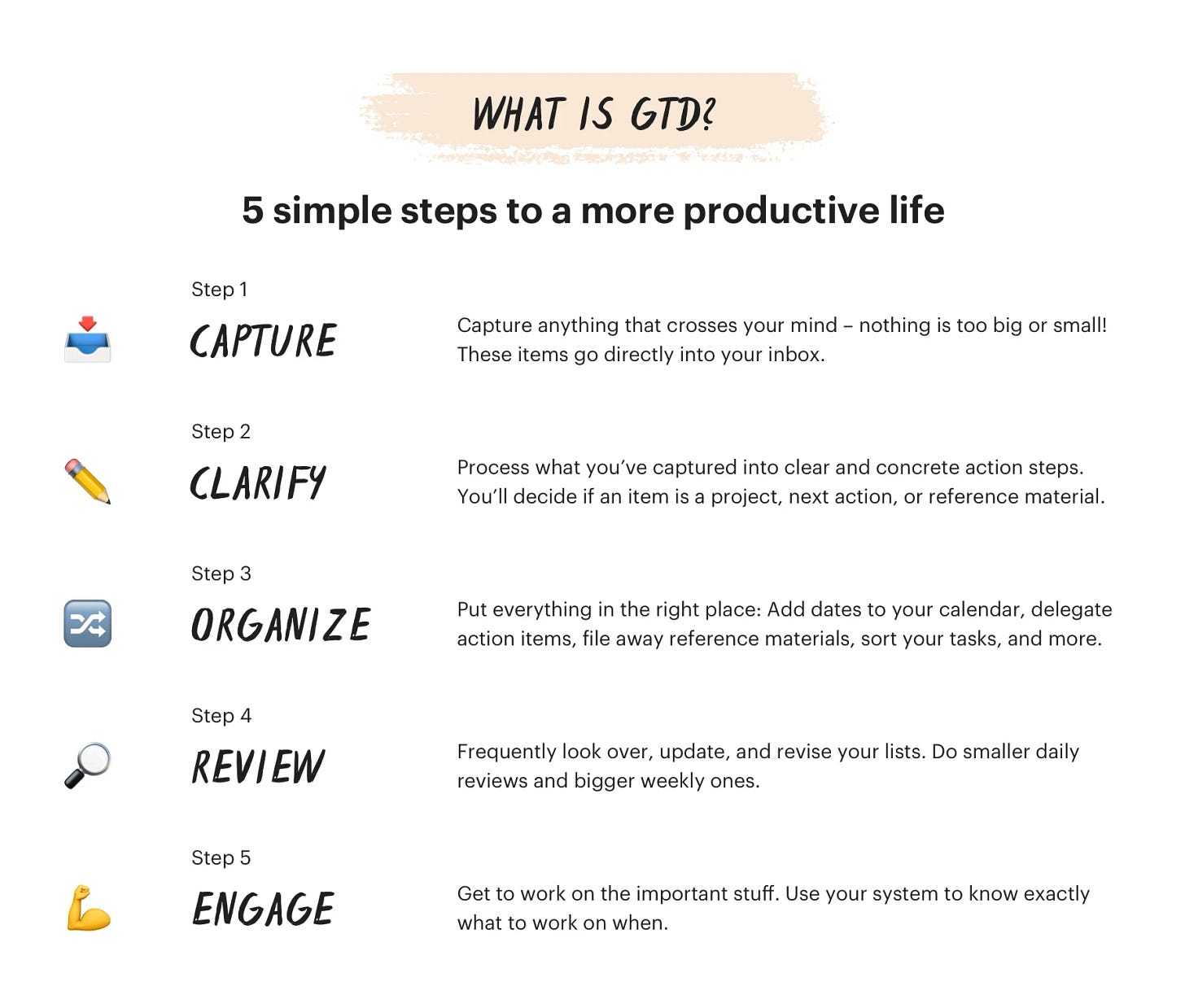Thankfully, this was at Etsy in 2011 when everyone was fangirling over Getting Things Done (which was published in 2001 but had become a cult classic by that point). The day someone told me to read it I took the subway straight to The Strand and bought a copy and cracked it open that night. Right away I implemented the overarching framework which is basically this: